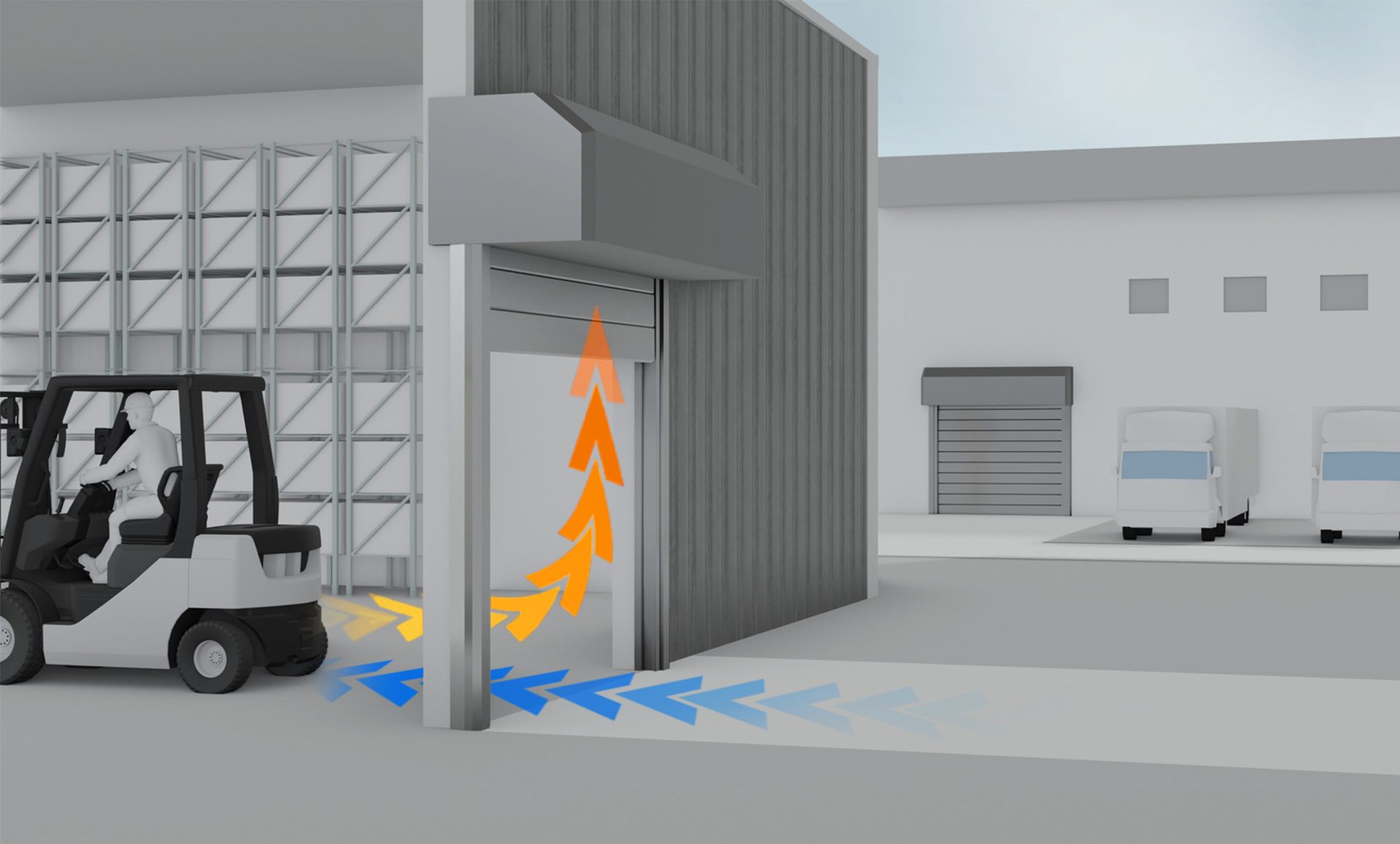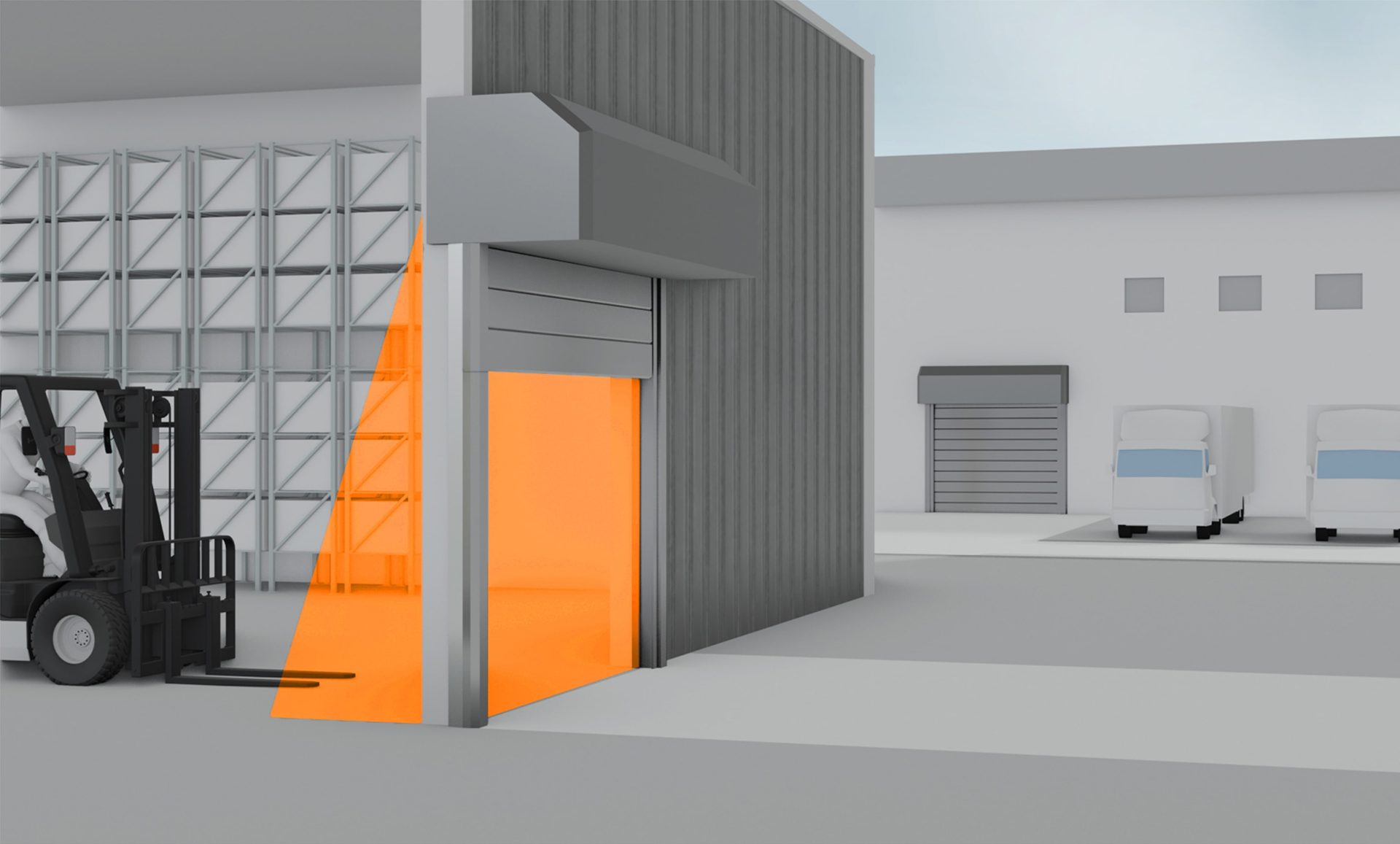 EFAFLEX stattet seine Tore mit verschiedenen Varianten smarter Sensorik und Vorfeldüberwachung aus. Diese innovative Sensorik senkt den Energieverbrauch und die CO₂-Emissionen eines Schnelllauftores, indem sie unnötige Fehlöffnungen durch Querverkehr sowie Zugriffe durch unbefugte Personen ausschließt. Gleichzeitig sorgt sie für kürzeste Offenhaltezeiten, die zuverlässig abgesichert werden.